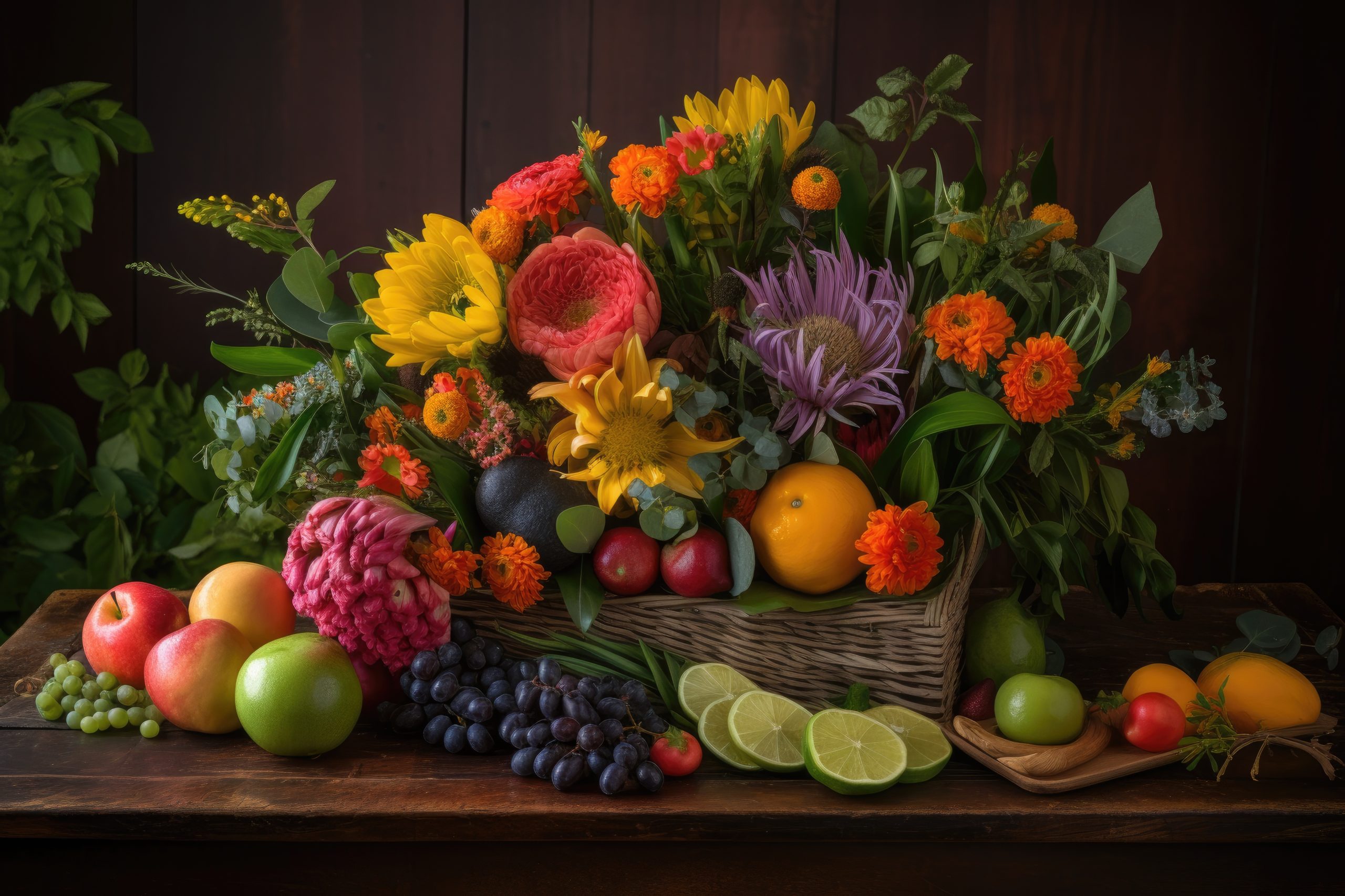 + Free ShippingFrutero en canasta, diseñada con flores de Jardín, crisantemos, girasoles y flores tropicales de temporada. Acompañado de frutas como manzanas, uvas, ciruelas, entre otras, según cosecha de temporada.
